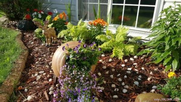Mỗi khu vườn nhỏ này được chị tạo hình và trồng các loại cây hoa khác nhau, có sự kết hợp hài hòa giữa cây bụi, cây leo, cây gỗ và những loại đá, tượng tạo hình.