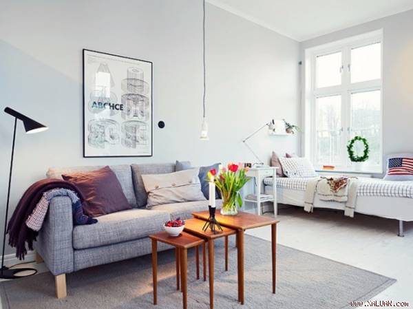 Một bức vách gỗ là cách đơn giản để phân chia chỗ ngủ nghỉ và tiếp khách. Bạn nên lựa chọn những kiểu có thiết kế nhẹ nhàng, thanh mảnh.